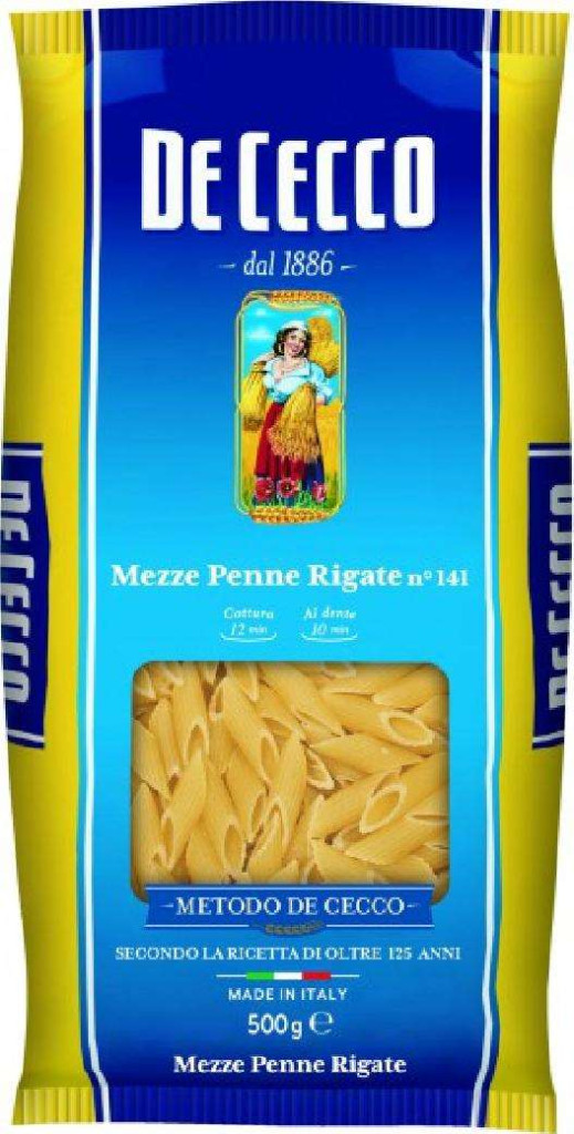 De Cecco Nr. 141 Mezze Penne Rigate 500g Packung 3-Pack – angled-cut penne pasta Value Bundle
