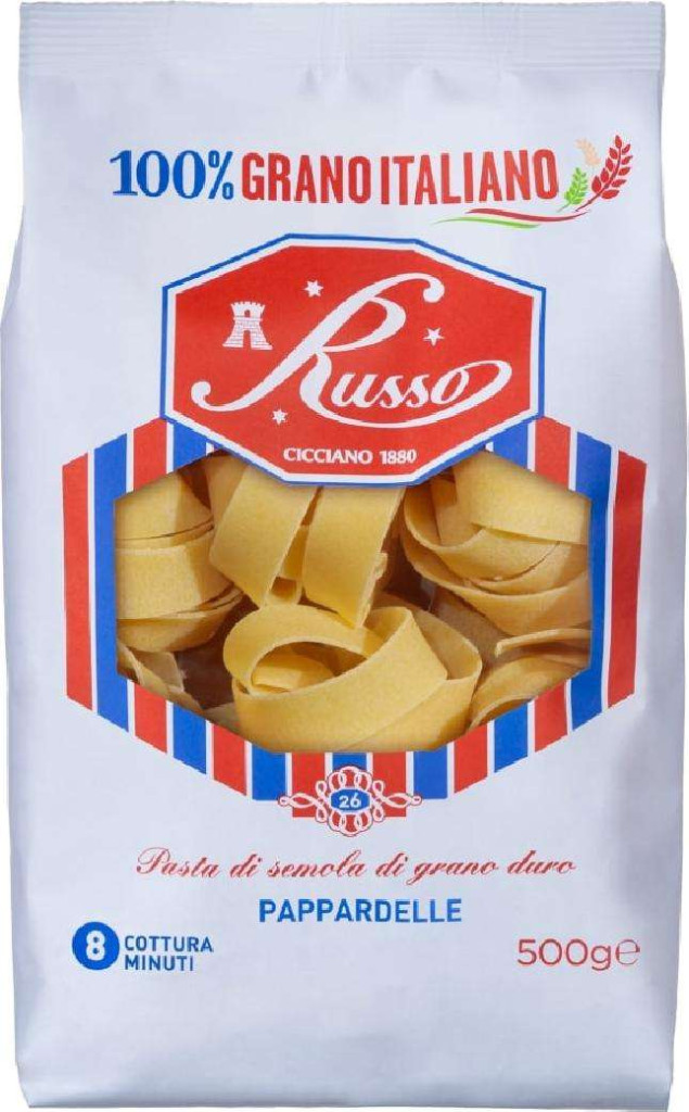 Russo ist eine bekannte Marke für Pasta- und Lebensmittelprodukte und steht für Qualität sowie zuverlässige Zutaten für die Küche.