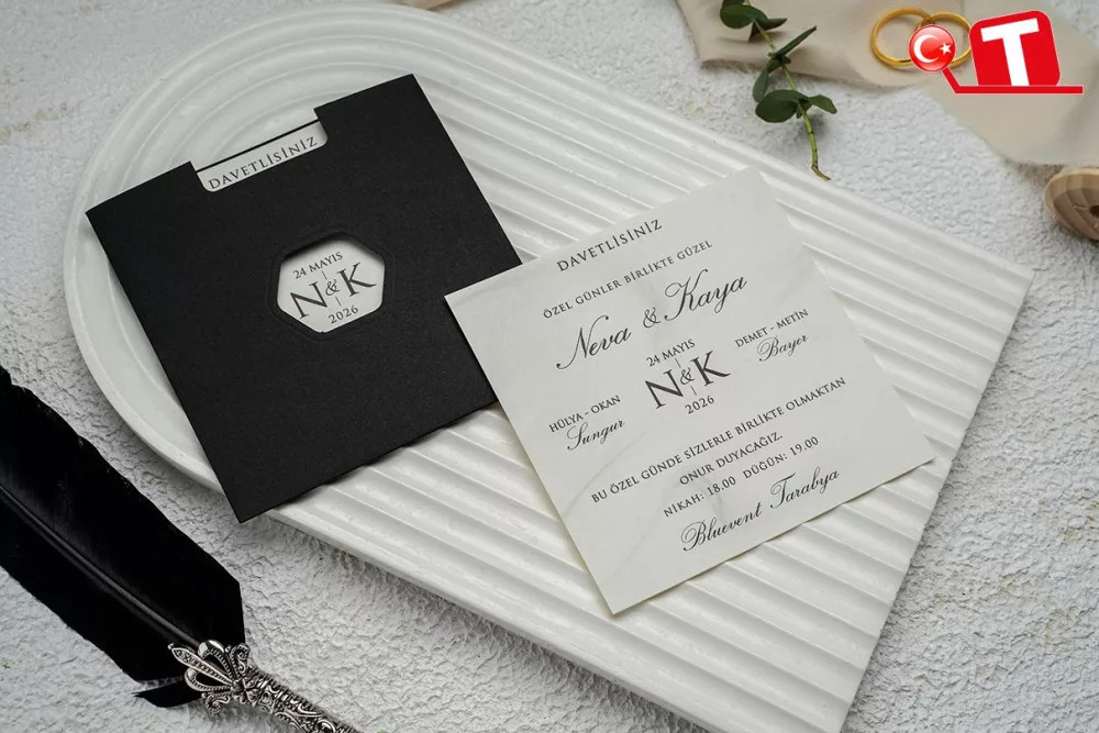 -Davetiyeler, görselde göründüğü şekildedir. Zarflı modeller için zarf bedeli fiyata dâhildir. Ancak, bazı davetiye modellerinde zarf bulunmamaktadır. Baskı yapılan alan katlama vb. işlemler sayesinde zarf görevi de görmektedir.