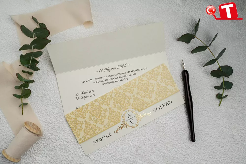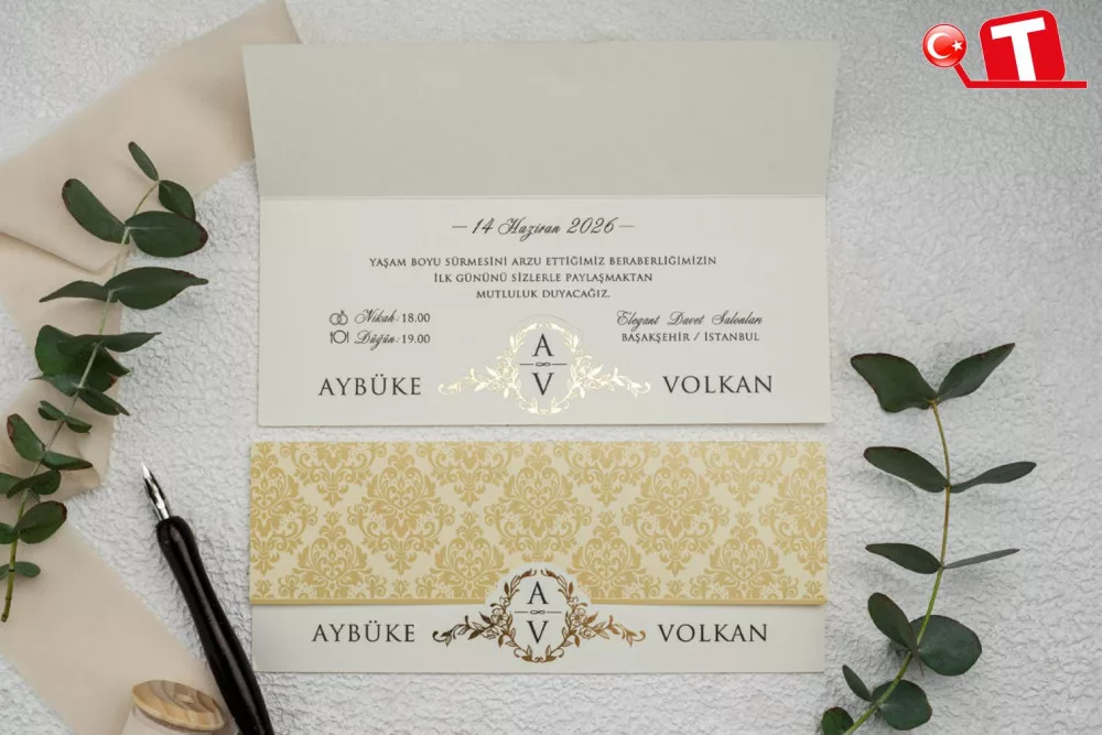 -Davetiyeler, görselde göründüğü şekildedir. Zarflı modeller için zarf bedeli fiyata dâhildir. Ancak, bazı davetiye modellerinde zarf bulunmamaktadır. Baskı yapılan alan katlama vb. işlemler sayesinde zarf görevi de görmektedir.