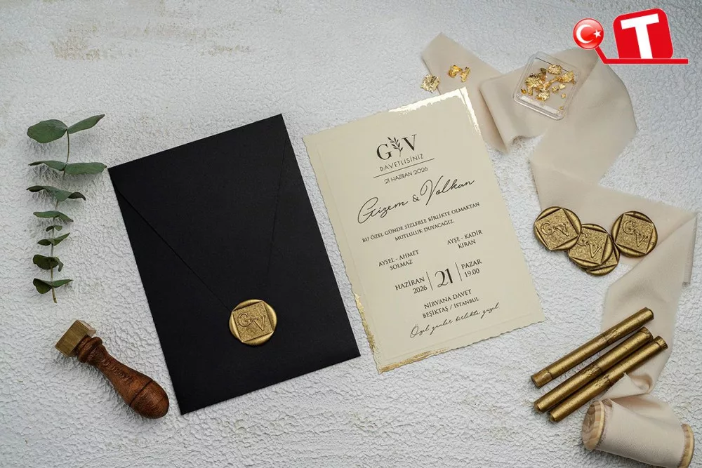 -Davetiyeler, görselde göründüğü şekildedir. Zarflı modeller için zarf bedeli fiyata dâhildir. Ancak, bazı davetiye modellerinde zarf bulunmamaktadır. Baskı yapılan alan katlama vb. işlemler sayesinde zarf görevi de görmektedir.