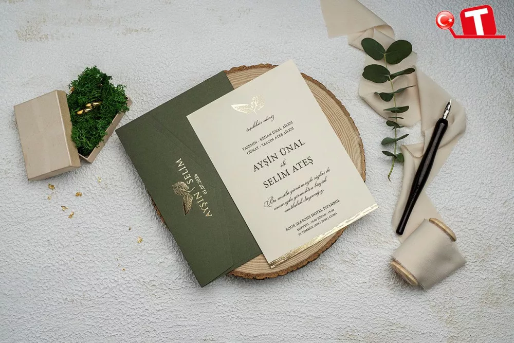 -Davetiyeler, görselde göründüğü şekildedir. Zarflı modeller için zarf bedeli fiyata dâhildir. Ancak, bazı davetiye modellerinde zarf bulunmamaktadır. Baskı yapılan alan katlama vb. işlemler sayesinde zarf görevi de görmektedir.