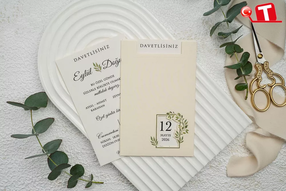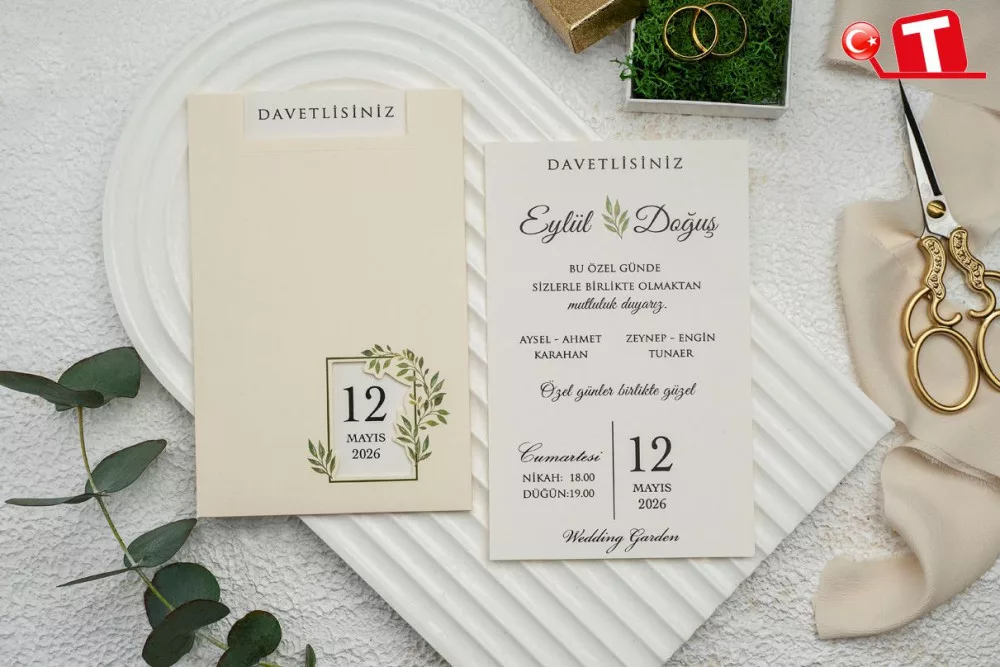 -Davetiyeler, görselde göründüğü şekildedir. Zarflı modeller için zarf bedeli fiyata dâhildir. Ancak, bazı davetiye modellerinde zarf bulunmamaktadır. Baskı yapılan alan katlama vb. işlemler sayesinde zarf görevi de görmektedir.