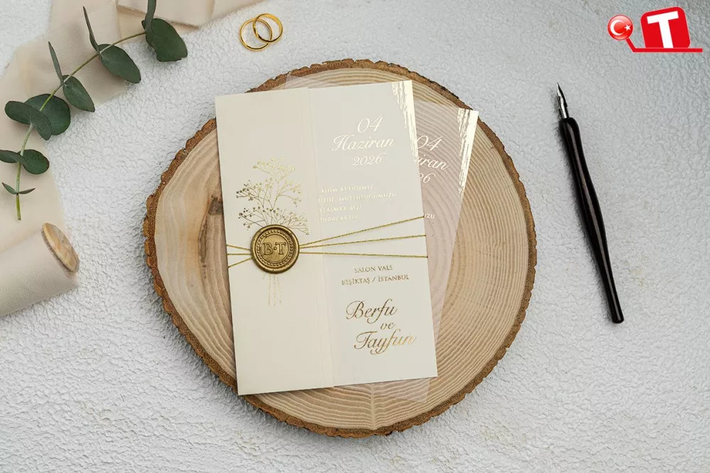 -Davetiyeler, görselde göründüğü şekildedir. Zarflı modeller için zarf bedeli fiyata dâhildir. Ancak, bazı davetiye modellerinde zarf bulunmamaktadır. Baskı yapılan alan katlama vb. işlemler sayesinde zarf görevi de görmektedir.