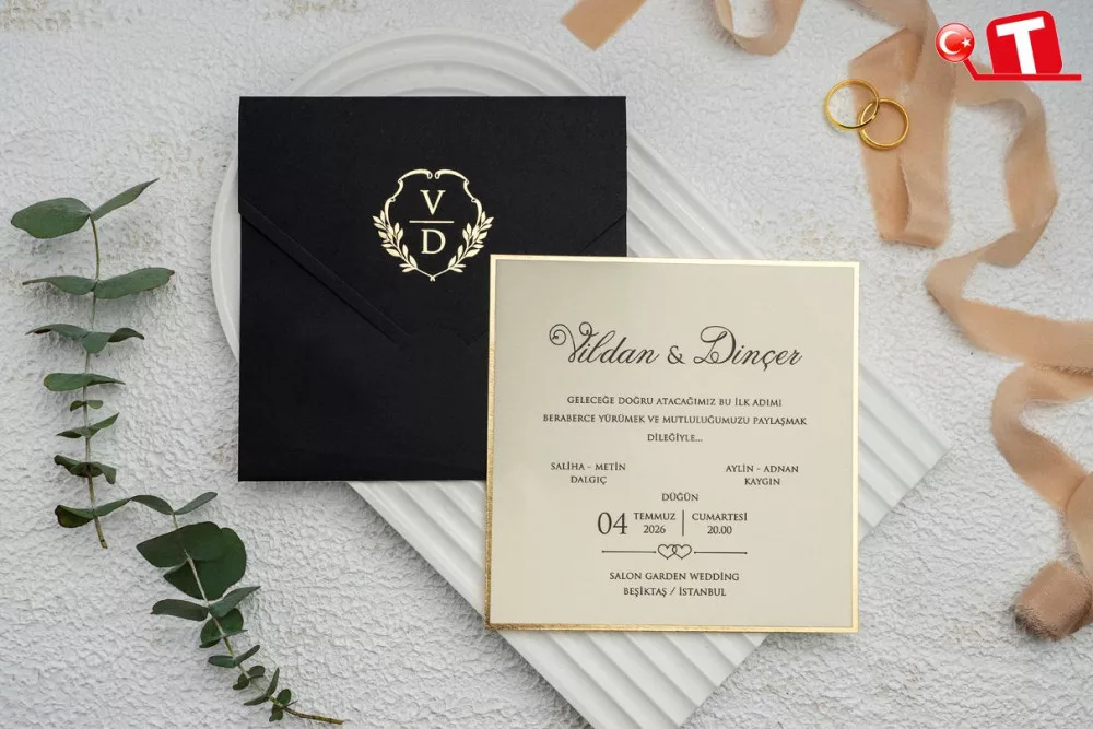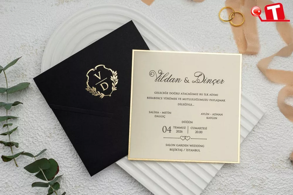 -Davetiyeler, görselde göründüğü şekildedir. Zarflı modeller için zarf bedeli fiyata dâhildir. Ancak, bazı davetiye modellerinde zarf bulunmamaktadır. Baskı yapılan alan katlama vb. işlemler sayesinde zarf görevi de görmektedir.