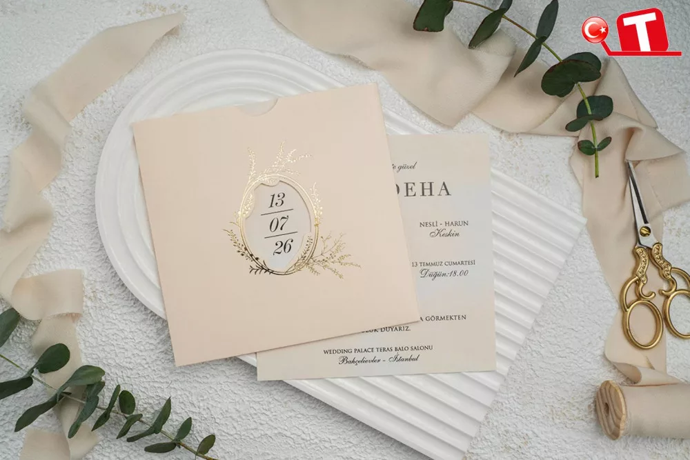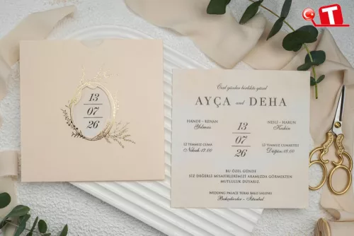 -Davetiyeler, görselde göründüğü şekildedir. Zarflı modeller için zarf bedeli fiyata dâhildir. Ancak, bazı davetiye modellerinde zarf bulunmamaktadır. Baskı yapılan alan katlama vb. işlemler sayesinde zarf görevi de görmektedir.