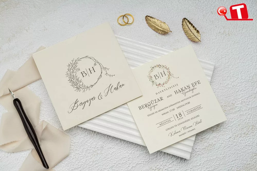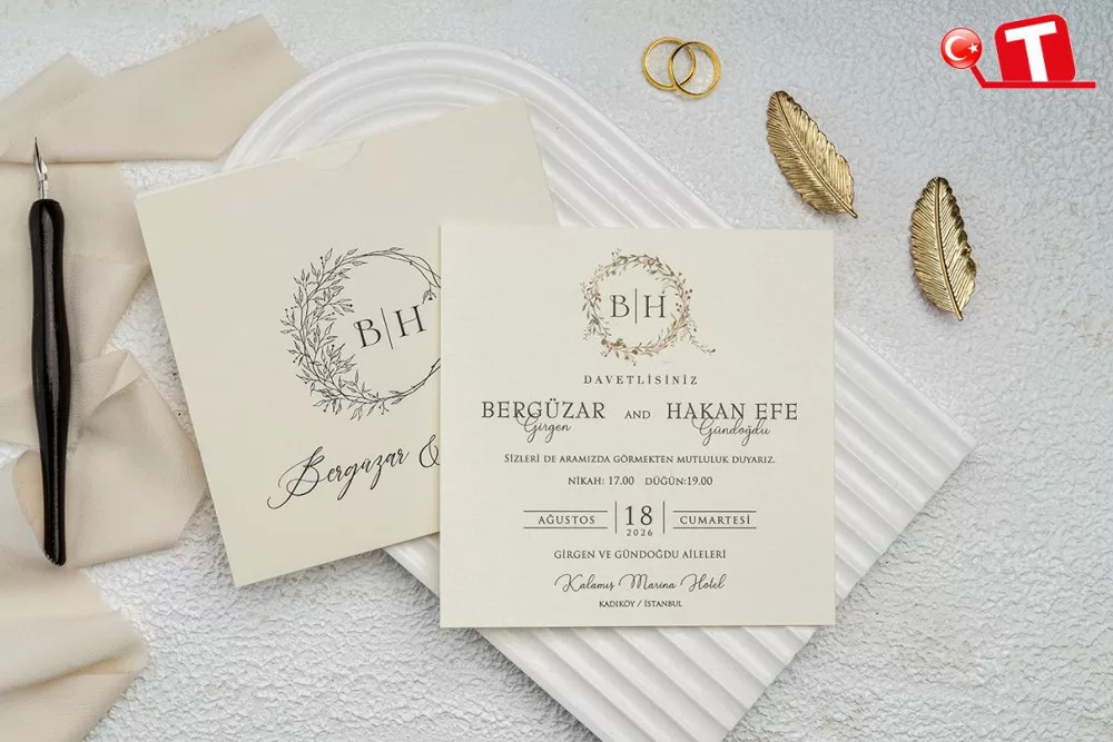 -Davetiyeler, görselde göründüğü şekildedir. Zarflı modeller için zarf bedeli fiyata dâhildir. Ancak, bazı davetiye modellerinde zarf bulunmamaktadır. Baskı yapılan alan katlama vb. işlemler sayesinde zarf görevi de görmektedir.