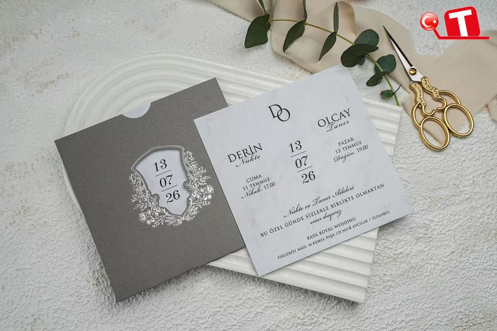 -Davetiyeler, görselde göründüğü şekildedir. Zarflı modeller için zarf bedeli fiyata dâhildir. Ancak, bazı davetiye modellerinde zarf bulunmamaktadır. Baskı yapılan alan katlama vb. işlemler sayesinde zarf görevi de görmektedir.