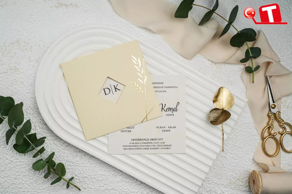 -Davetiyeler, görselde göründüğü şekildedir. Zarflı modeller için zarf bedeli fiyata dâhildir. Ancak, bazı davetiye modellerinde zarf bulunmamaktadır. Baskı yapılan alan katlama vb. işlemler sayesinde zarf görevi de görmektedir.