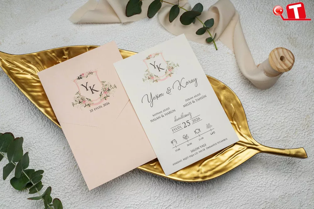 -Davetiyeler, görselde göründüğü şekildedir. Zarflı modeller için zarf bedeli fiyata dâhildir. Ancak, bazı davetiye modellerinde zarf bulunmamaktadır. Baskı yapılan alan katlama vb. işlemler sayesinde zarf görevi de görmektedir.