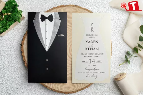 -Davetiyeler, görselde göründüğü şekildedir. Zarflı modeller için zarf bedeli fiyata dâhildir. Ancak, bazı davetiye modellerinde zarf bulunmamaktadır. Baskı yapılan alan katlama vb. işlemler sayesinde zarf görevi de görmektedir.