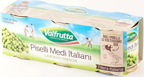 Valfrutta 3 x 400g mittlere Erbsen 1,2 kg is a versatile canned legume or vegetable product suitable for many dishes. The quality from Valfrutta makes it ideal for salads, soups and quick everyday meals.