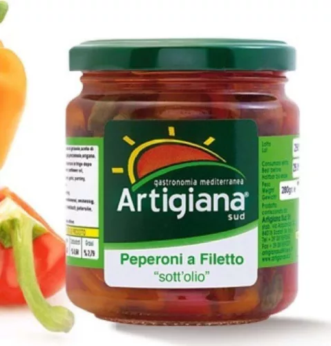 Paprikafilets von Artigiana Sud, 280g is a versatile canned legume or vegetable product suitable for many dishes. The quality from Paprikafilets makes it ideal for salads, soups and quick everyday meals.