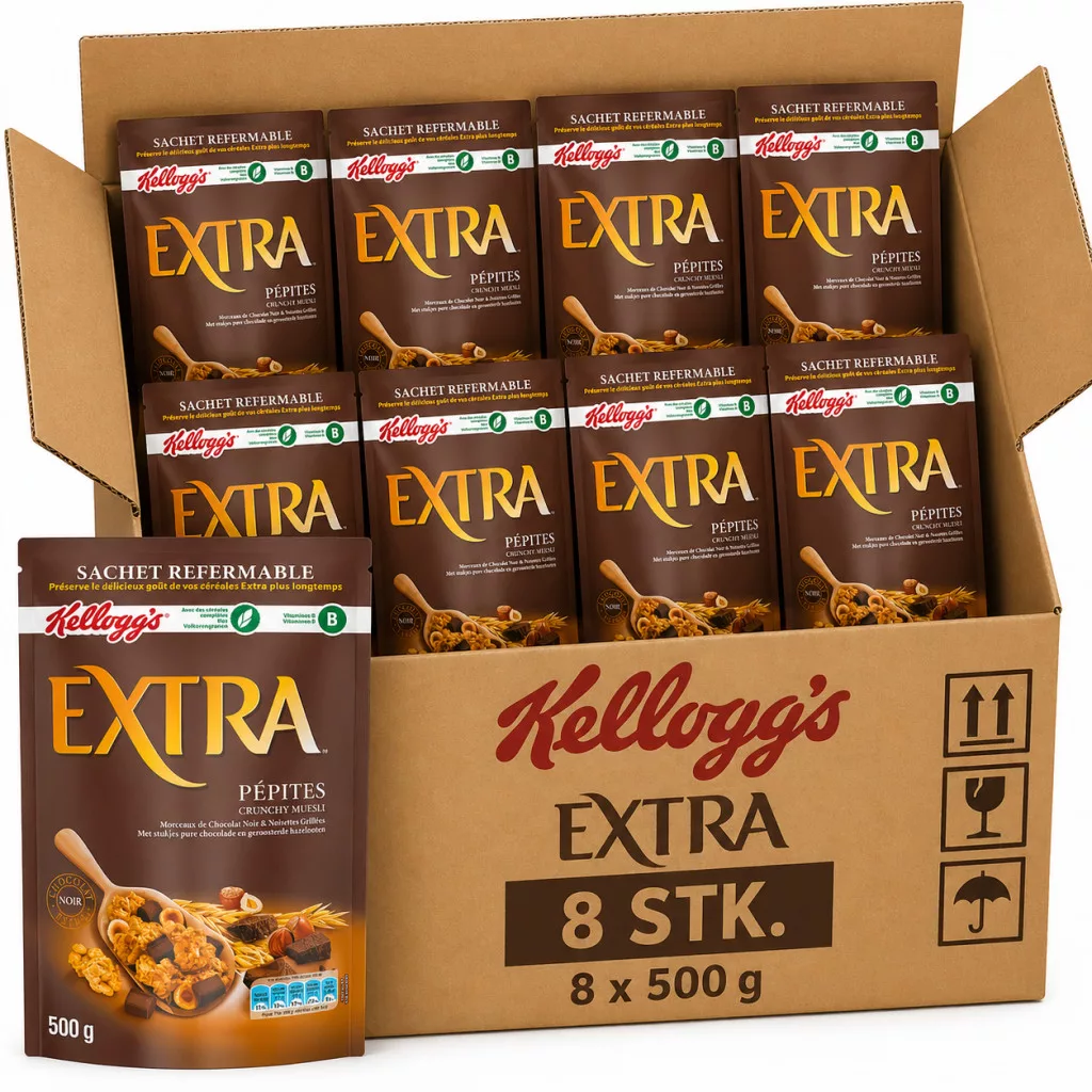 Kellogg’s Extra Chocolate & Hazelnut Crunchy Muesli (8 Pcs Carton, 8 x 500 g)