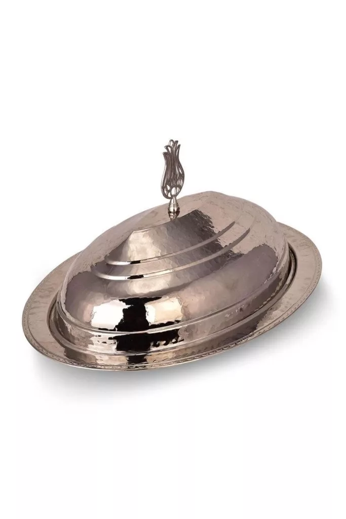 Hanedan Classic Lidded Boat Serving Plate 40 cm – Hand-Hammered, Nickel