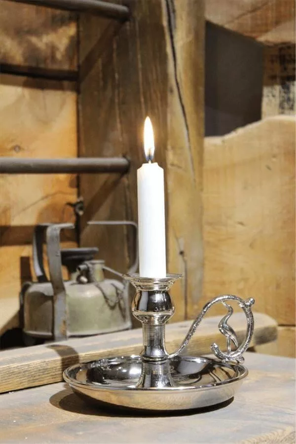 Alem Candle Holder – Straight, Nickel, Silver Handle