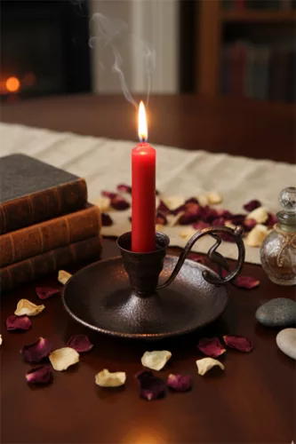 Decorative Metal Nostalgic Candle Holder & Hand Candlestick with Pin – Dark Coffee, Oxidized Handle
