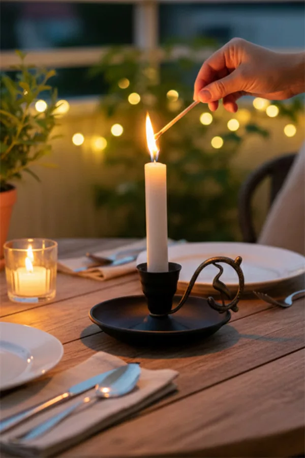 Decorative Metal Nostalgic Candle Holder & Hand Candlestick with Pin – Matte Black, Antique Handle
