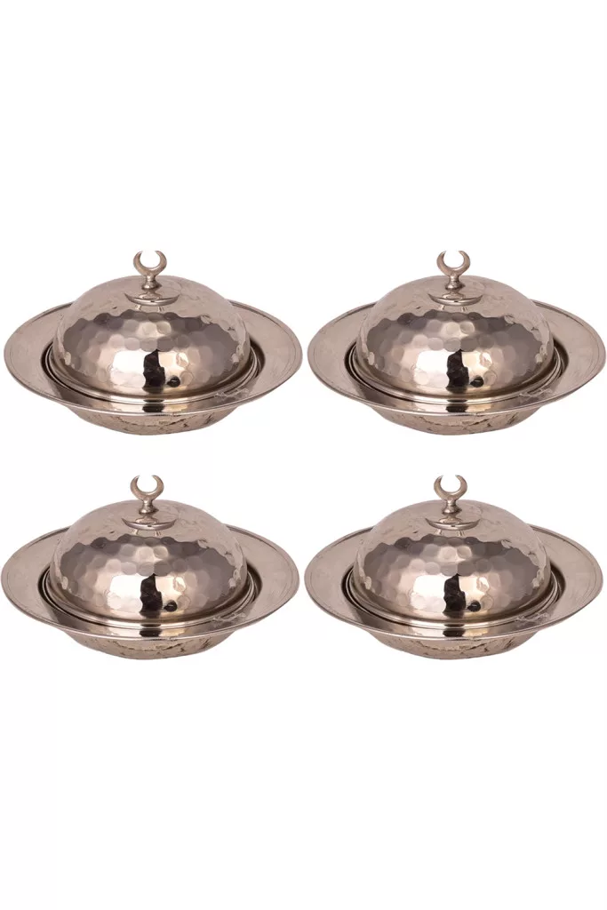 Saka Round Turkish Delight Bowl 11 cm – Hand-Hammered, 4-Pack Set, Nickel