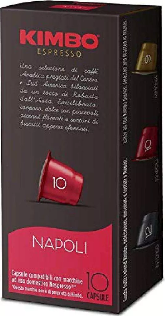 Kimbo Nespresso Napoli Kapseln, 10 Stück – Tee Kaffee oder Zuckerprodukt für Frühstück und Heißgetränke