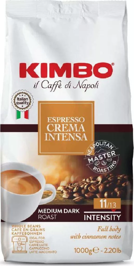 Kimbo Espresso Crema Intensa Kaffeebohnen, 1 kg – Tee Kaffee oder Zuckerprodukt für Frühstück und Heißgetränke