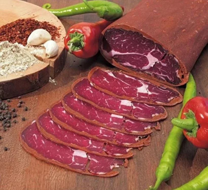 Aromatik Kayseri usulü dana pastırma, halal sertifikalıdır. Geleneksel baharatlarla hazırlanıp hava ile kurutulur. Kahvaltı, meze tabakları ve sandviçler için ince dilimlenmiş olarak idealdir.