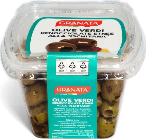 ganata Entsteintegrüne Oliven vom Ätna, İschia-Art 220g ist ein hochwertiges Speiseöl für Salate, Pasta und mediterrane Gerichte. Die aromatische Qualität von ganata sorgt für feinen Geschmack und vielseitige Verwendung in der täglichen Küche.