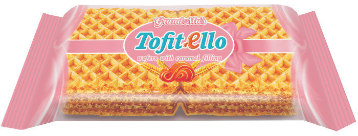 TOFITELLO stands for soft caramel-filled wafer enjoyment, combining sweet filling, crisp layers, and accessible family-friendly snacking.