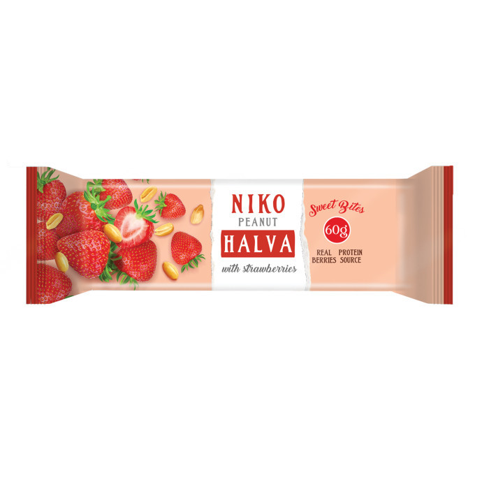 Peanut halva bar NIKO with strawberries, 60g - leckere Snack-Auswahl
