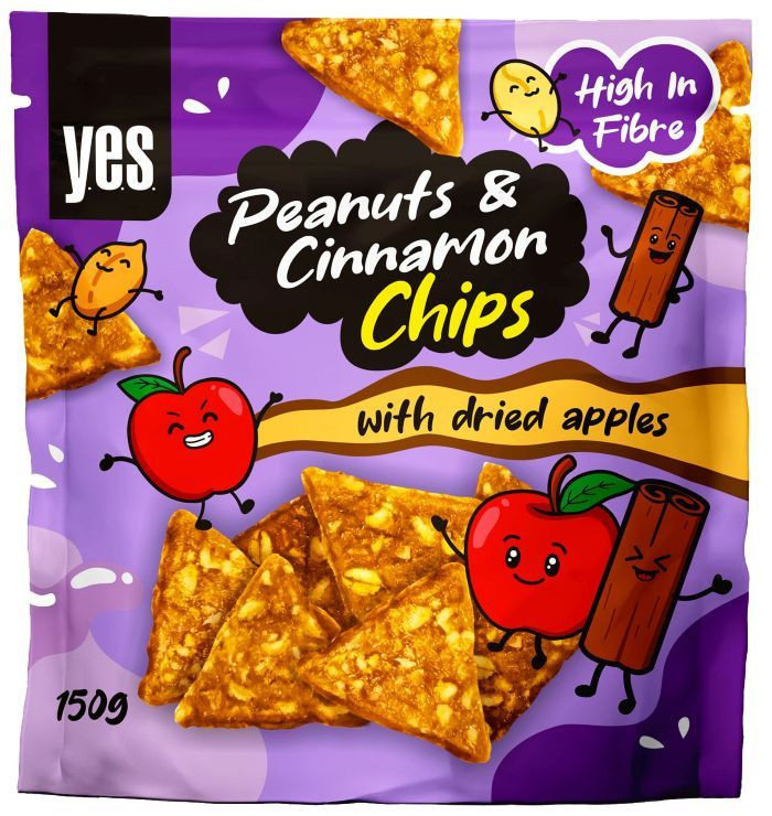 Peanut chips YES with cinnamon and dried apples, 150g - perfekt für den Alltag