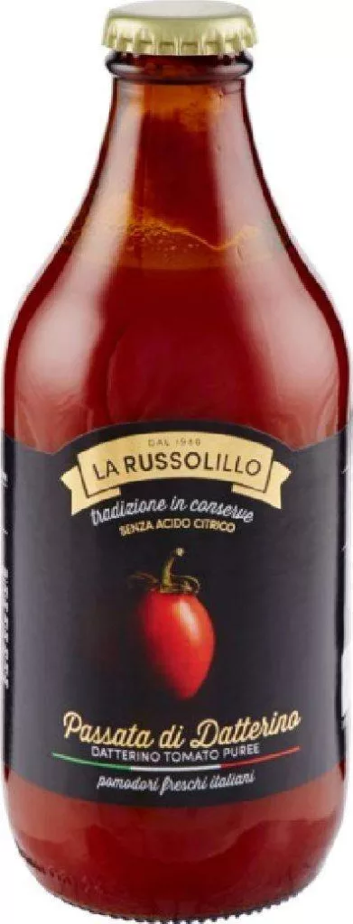 Russolillo Datterino Passata 340g ist eine hochwertige mediterrane Sauce oder Tomatenzutat. Mit der Qualität von Russolillo eignet sich dieses Produkt ideal für Pasta, Pizza, Aufläufe und viele italienische Rezepte.