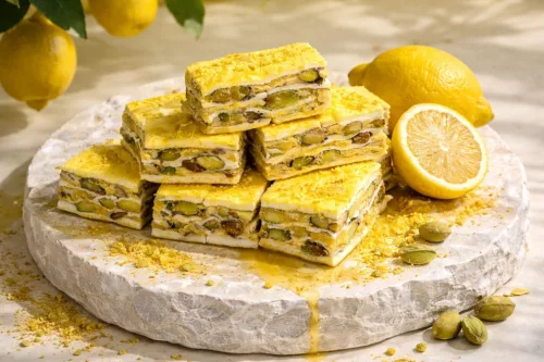 İnce limon aromalı, Antep fıstıklı baklava lokumu; özenle hazırlanmış yumuşak dokusu ile çay ve kahve yanında ikram, hediye ya da özel kaçamaklar için ideal bir lezzet.