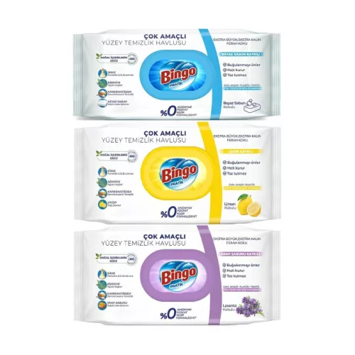 Bingo Temizlik Havlusu 3 paket - 100 adet | Yüzey Temizleyici – Günlük Kullanım İçin