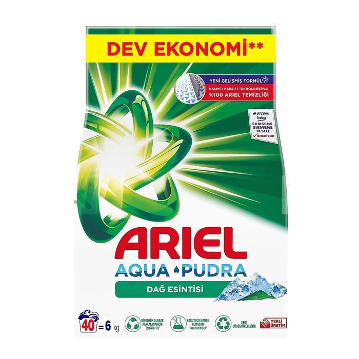 ÜRÜN AÇIKLAMASIAriel Toz Çamaşır Deterjanı 6 kg, çamaşırlarda kir ve lekelerin giderilmesine yardımcı olan etkili bir deterjan ürünüdür.