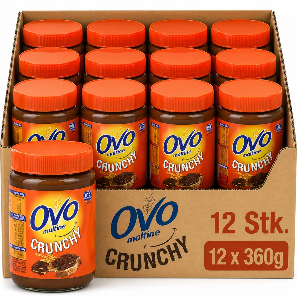 OVO Maltine Crunchy Sürülebilir Kakao & Malt Kreması (12 Adet x 360 g)